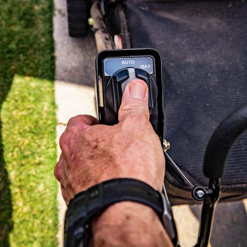 Fixed deck, Rear-discharge bagger and mulch plug standard.